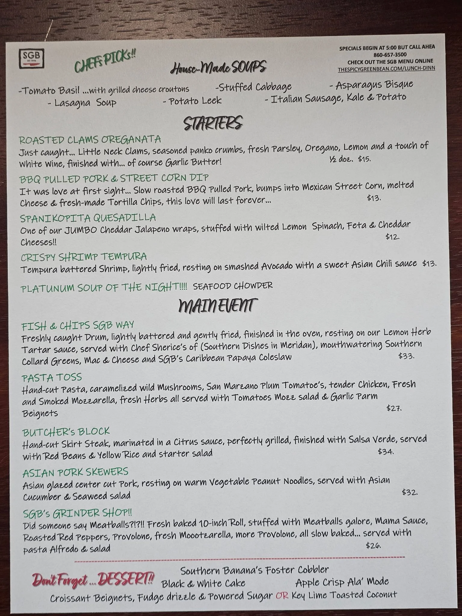 See below for current specials